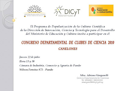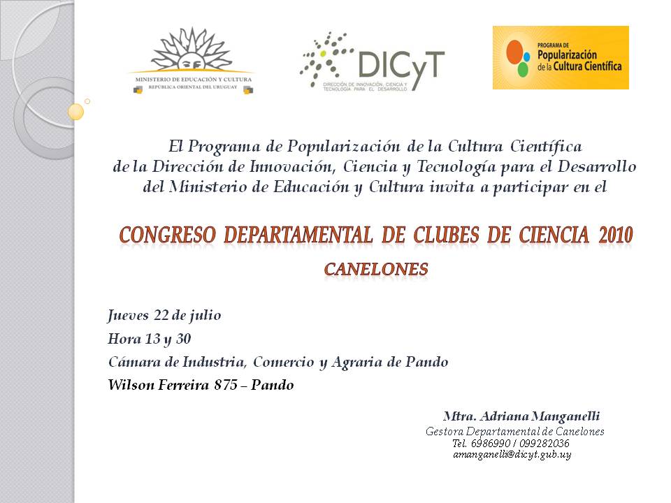 El Congreso de Clubes de Ciencia es una instancia donde se presentan los avances de la investigación entre Clubes del departamento. El jueves 22, en Pando, podrán compartir ideas, plantear dudas, recibir información y tener una devolución (de técnicos y evaluadores) para orientar y mejorar la calidad de los trabajos en curso aquellos Clubes de Ciencia que se inscribieron para participar.
